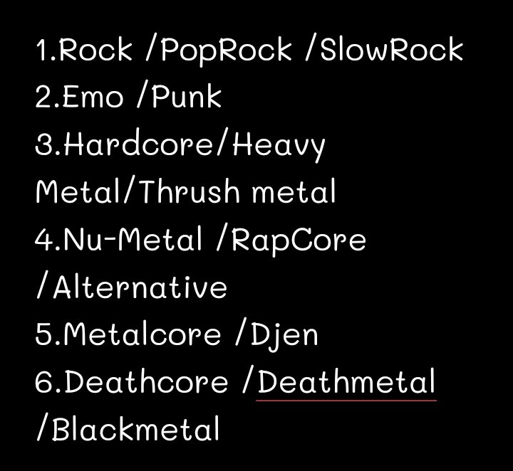 ดนตรีแนว Rock ถ้าแยกว่ามีแนวใดบ้างมันจะเยอะไปหมดและจดจำยาก ผมจะแยกโดยใช้คำมาแทน แนวเพลงที่ใกล้เคียงกัน โดยเอาเสียง หรือ ดนตรี ประกอบกับ ลักษณะ การร้อง มาแบ่งได้ 6 กลุ่ม ดังนี้